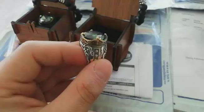 Designed to be out of the norm for a topaz stone, the stone itself glitters more than what it's named for with varying degrees of colors when light enters its space. The stone's border was drafted to be peculiarly looped around it with small stones and toned accents. The rest of the sterling silver band is refined to add better overall equity and style for an already out there item to show flair with. The three sons of Bor had no use for Ymir and his growing family of brutish giants. They attacked and killed Ymir. So much blood flowed from Ymir's body that it drowned all the other giants except for Bergelmir and his wife, who rode away in a hollowed-out tree trunk floating on a sea of gore. All the giants today are descended from them. Óðin, Vili, and Vé took Ymir's body to the center of Ginnungagap. From his body, they made the world. Ymir's flesh became the earth, and his unbroken bones the mountains. From his teeth and bone fragments, they made rocks and stones. They used his blood to make the lakes and oceans encircling the world. They raised Ymir's skull over the earth to make the sky and placed a dwarf at each of the four corners to hold up the sky. Glowing embers from Múspell were thrown into the sky to make the sun and moon and stars and planets. Ymir's brains were thrown into the sky to make the clouds. Ymir's eyebrows were used to make a fortification around the world, to protect against the giants. Inside the fortification is Miðgarð, the realm of man.
