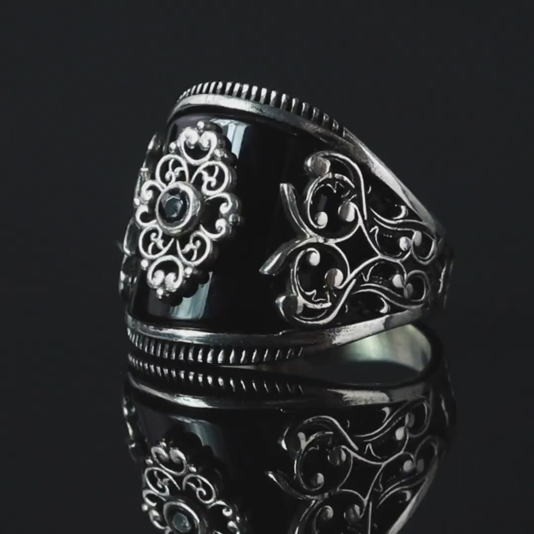 This classy ring made from sterling silver gives an aura of authority and and well being. The symbols and the look of the ring itself are already seen as a status in society. Rings were worn around the finger and were a very popular piece of jewelry in the Viking times. Many rings were penannular with them being open ended.